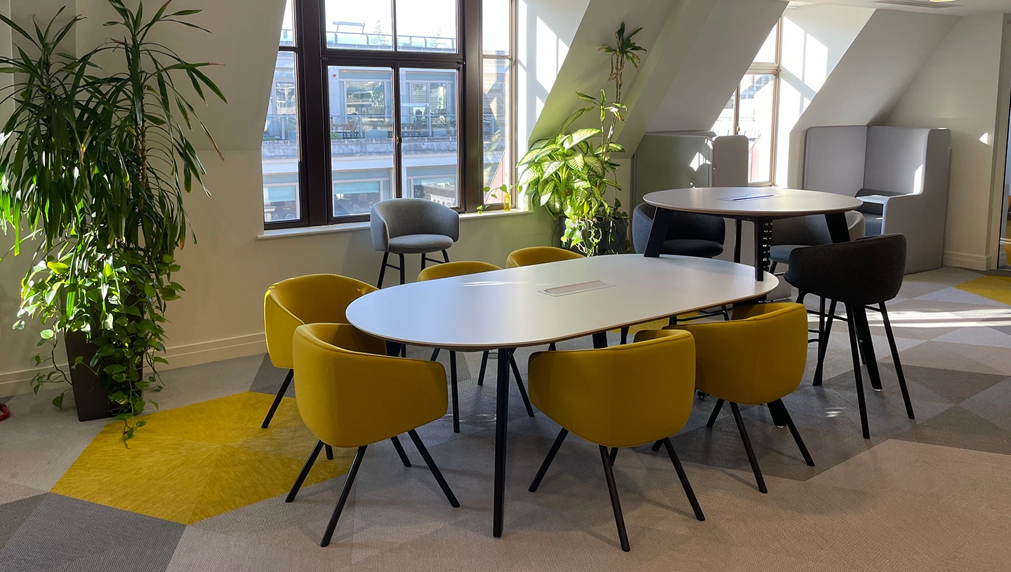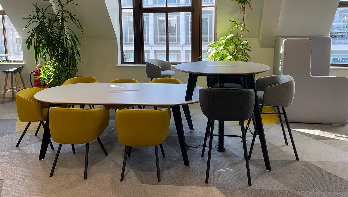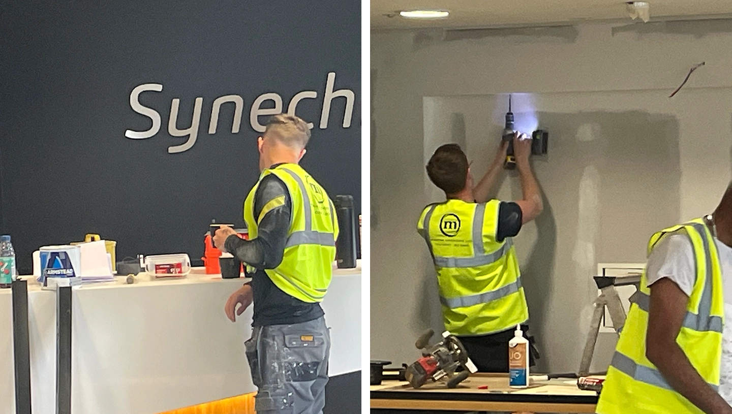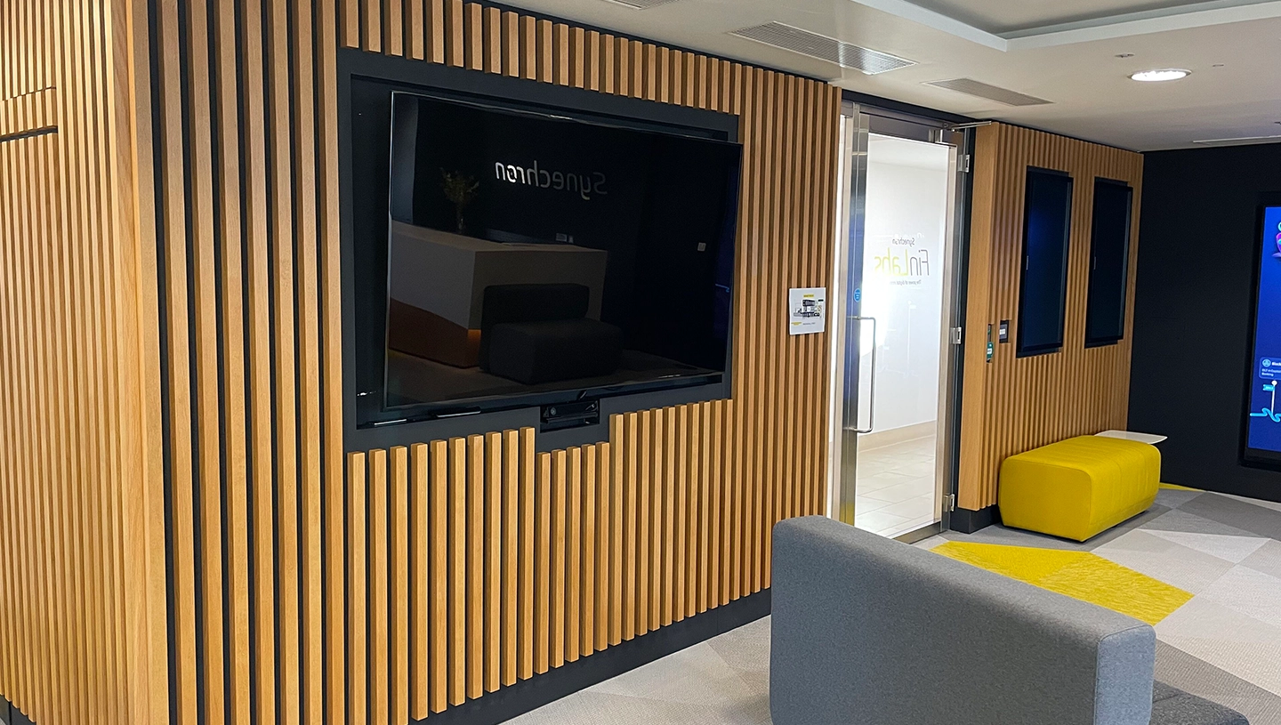 Synechron a leading global digital transformation consultancy specialising in financial services and artificial intelligence, engaged Mantra Interiors to deliver a complete installation of a large format videowall, including all associated electrical, data and construction works. The space was fully redecorated and enhanced with high-level loose furnishings and bespoke meeting tables creating a modern and functional environment.